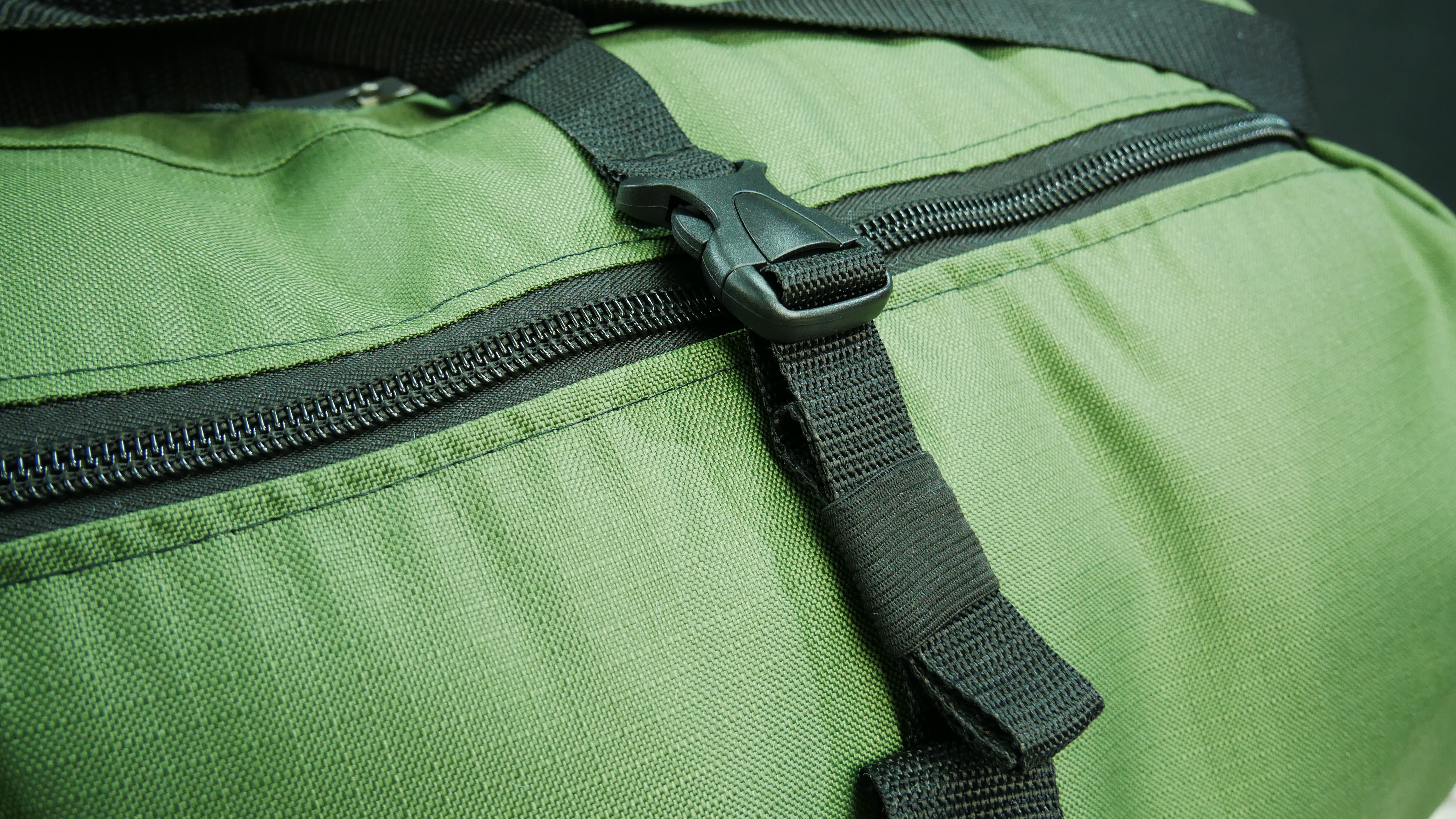 Сверху расположены дополнительные ремни с фастекс-креплением для снятия нагрузки с молнии, а также для крепления дополнительных вещей.